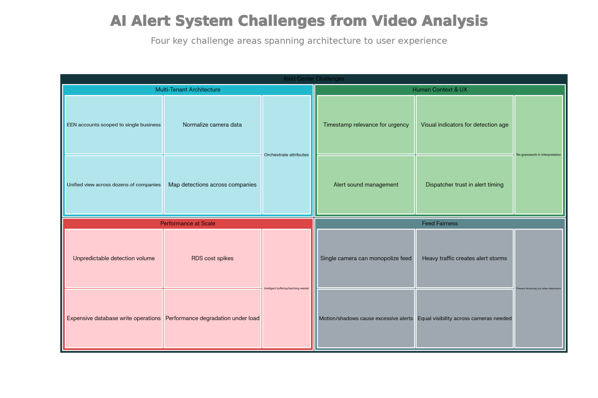 - Feed Fairness and Equal Visibility: A single problematic camera could completely overwhelm the alert stream, creating operational blind spots.